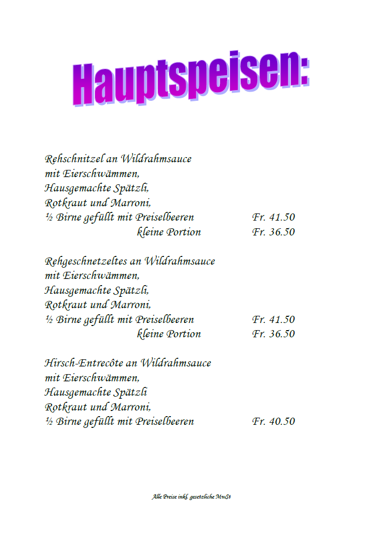 So finden Sie eine grosse Auswahl an hausgemachten Speisen und Schweizer Klassikern.